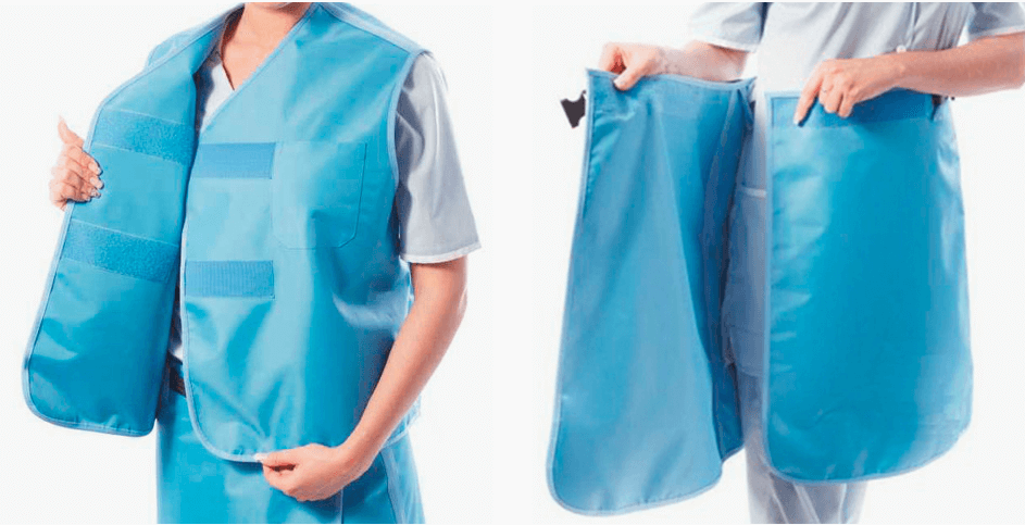 Призначений для захисту спереду та ззаду органів грудної клітки персоналу, на відміну від фартуха, закриває верхню частину тулуба з усіх боків, більш ефективно захищаючи тіло від розсіяного випромінювання. Зручна конструкція на липучках забезпечує універсальний розмір жилета, а в місцях перекриття свинцевий еквівалент подвоюється. Жилет рентгенозахисний та жилет з максимальним запахом відрізняються великим запахом та довжиною.Можливе індивідуальне пошиття.
